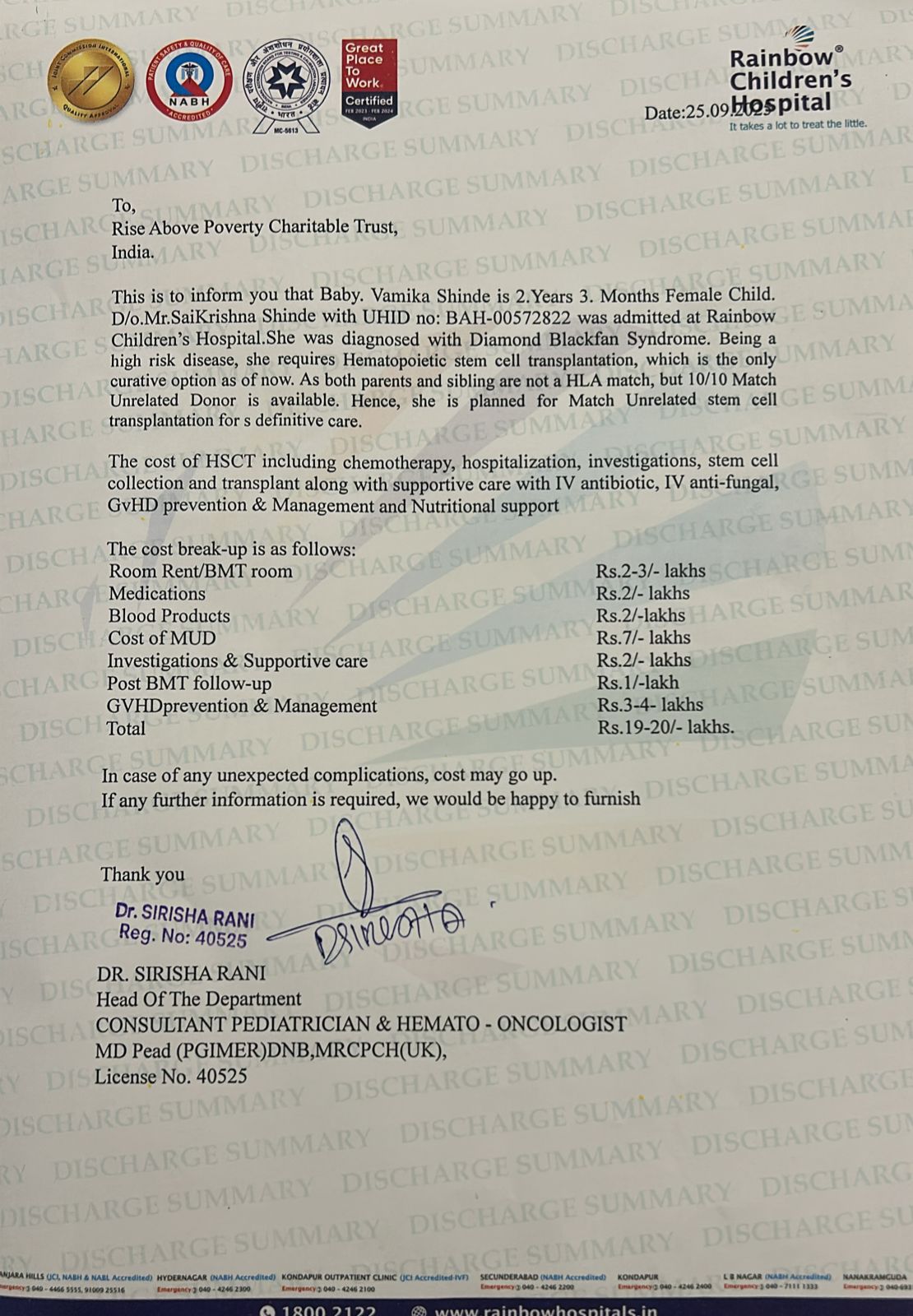 At Rise Above Poverty Charitable Trust, we believe no family should fight alone. Let’s come together and give Vamika the chance she deserves — a healthy, happy, and hopeful tomorrow.